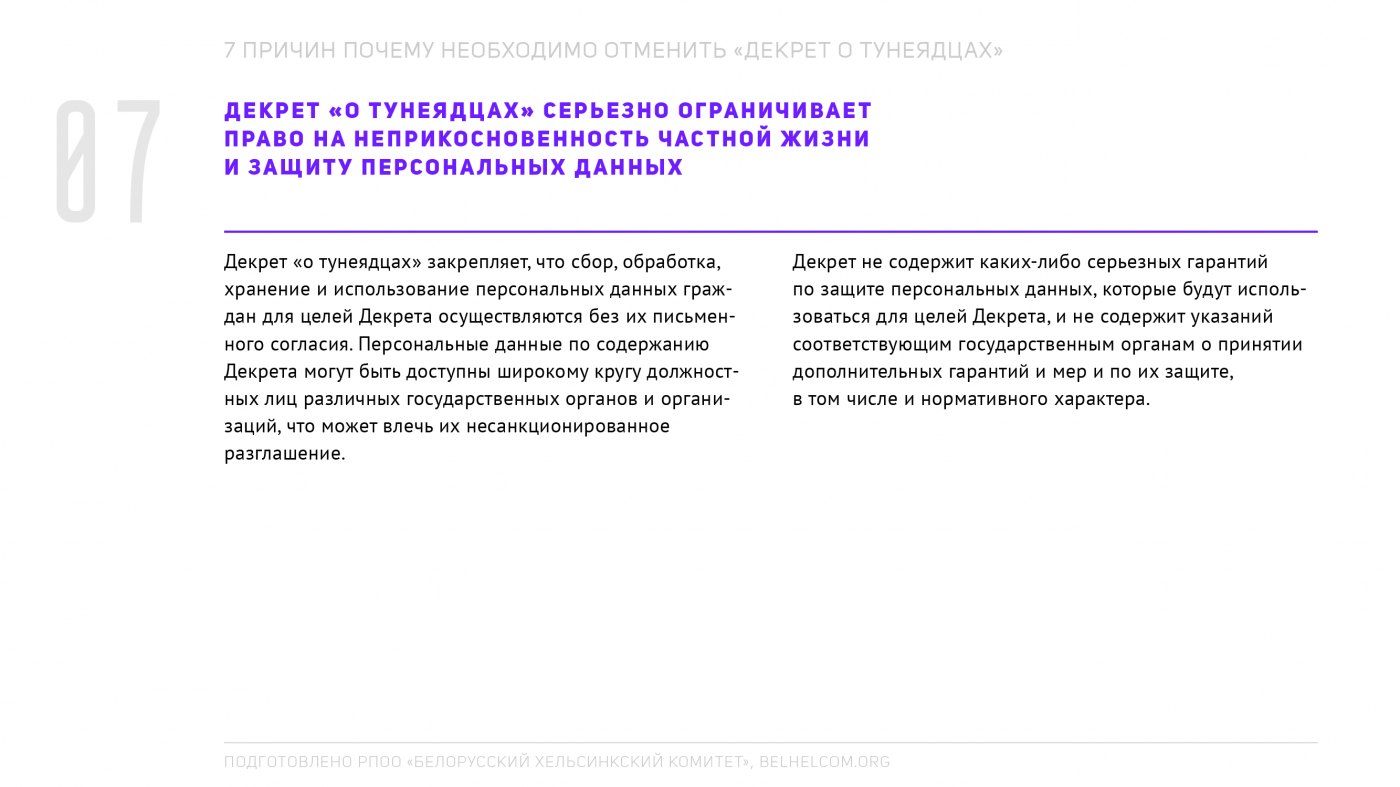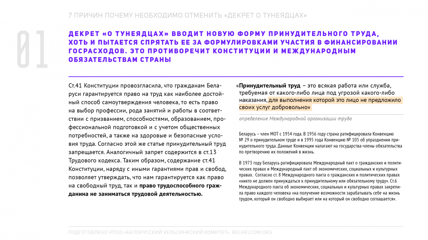 Также напоминаем 7 аргументов, почему Декрет следует признать нарушающим Конституцию и международные договоры страны и отменить.